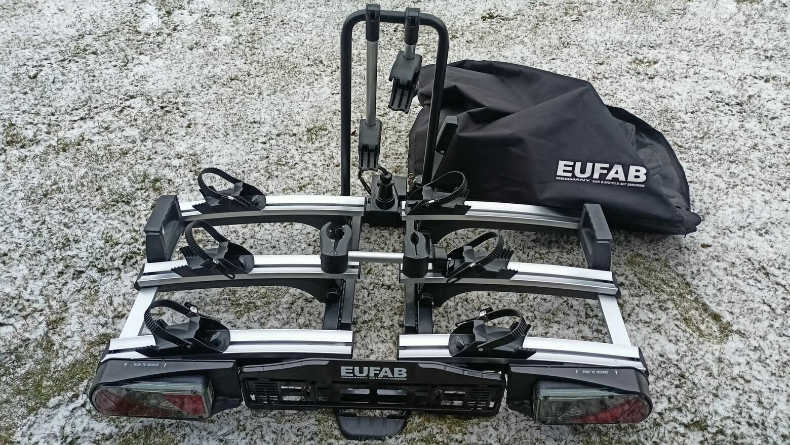 Sprzedam w bdb stanie malo uzywany bagaznik niemieckiej marki eufab w wersji skłądanej Premium 3 i torba w komplecie na 3 rowery>Żadko spotykany model w takiej opcji zajmujacy malo miejsca, z waga do 60kg(i wiecej) kostak 13PIN. Wiecej indo mozna znalezc na internecie. Odbior os w Bielsku-Białej, Kalnej, mozliwosc wysyłki za opłata.Dane techniczne składanego bagażnika